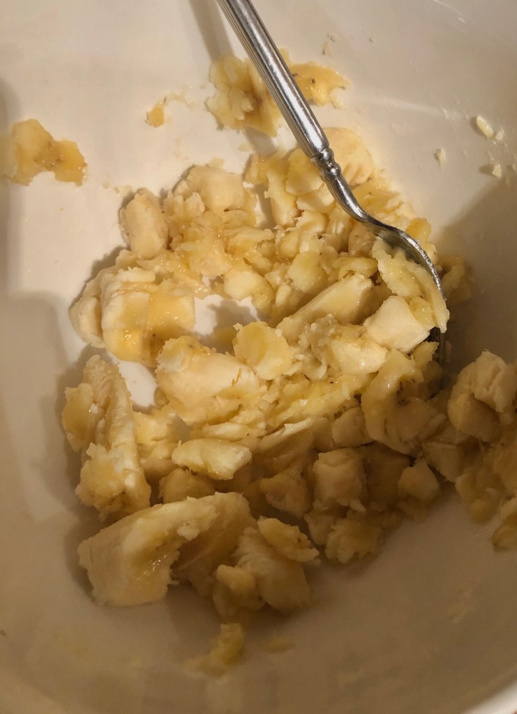 3-4 medium ripe bananas, mash with a fork