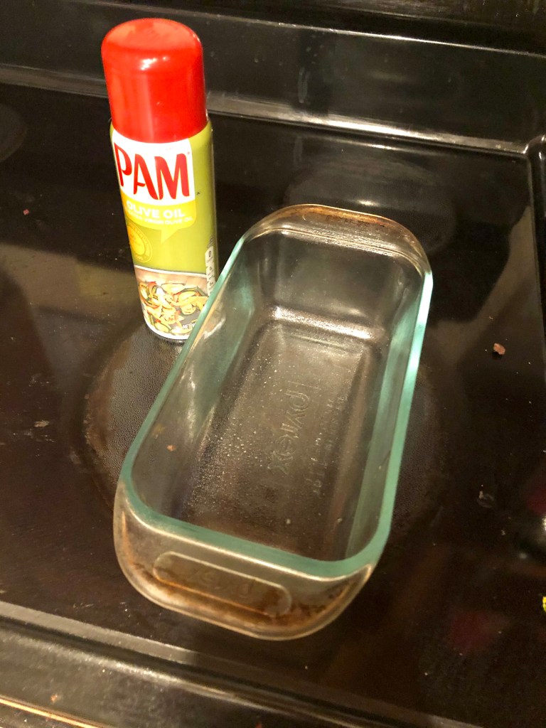 Heat your oven to 350 degrees. Mix all the wet ingredients with the fork so the bananas can maintain some mashed shape. Add the dry ingredients. Use cooking spray to coat the 8-inch loaf pan. One recipe fills one pan. Place the filled pan into the oven on the middle rack. Check the banana bread at 50 minutes. Test with a knife to see if the knife comes out clean. If not, bake for about 10 more minutes. This recipe tend to look a little lighter whether my regular gluten-filled loaf recipe. The knife through is the important part. No one wants soggy banana bread after all this work.
