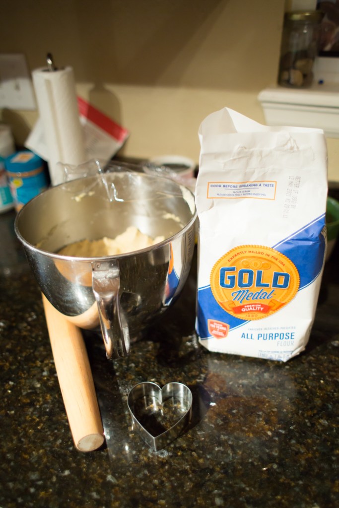My recipe calls for the dough to chill for a few hours so we left it overnight. I put a bit less flour than what it called for since it would dry out a bit while it’s chilled. I cover the mixing bowl with plastic wrap and in the refrigerator it goes.