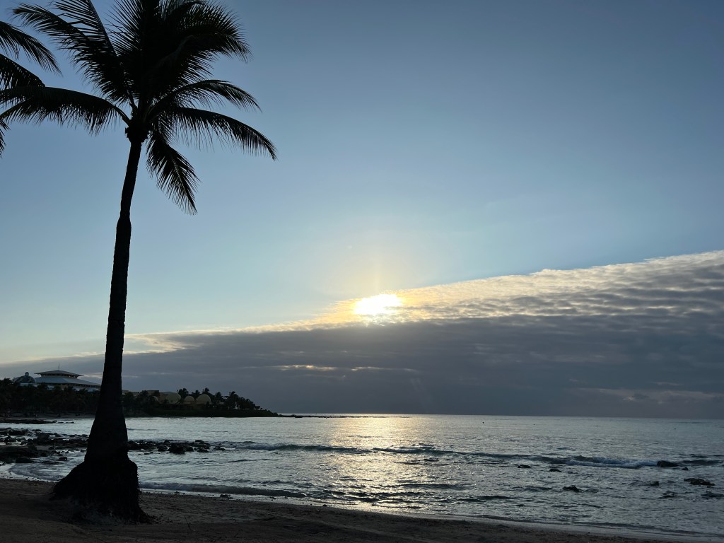 I did crave this quiet. The beautiful colors of the ocean and sunrise distracted the bustling in my mind. The sand, although white in all the pictures, looked dirty and green. As I sat on the lounge chair I saw resort employees wracking the sand. Loads of seaweed had remained when the tide went out. Unable to wash back to sea, it remained heavy and limp, now a waste to the picturesque landscape.